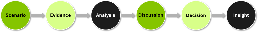 A live, scenario-led environment where real-world challenges are examined collaboratively.